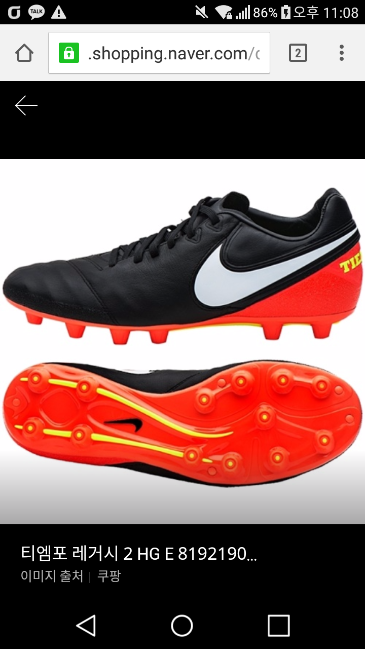 최근 산 축구화 티엠포 레거시2 HG-E 사이즈 줄이기