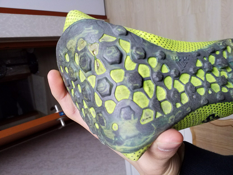 뭣보다 가장 가슴아픈... 스터드 가 많이 갈린것과.... 축구화 바닥이 금가듯이 찢어진것인데요... 이리저리 알아보다가