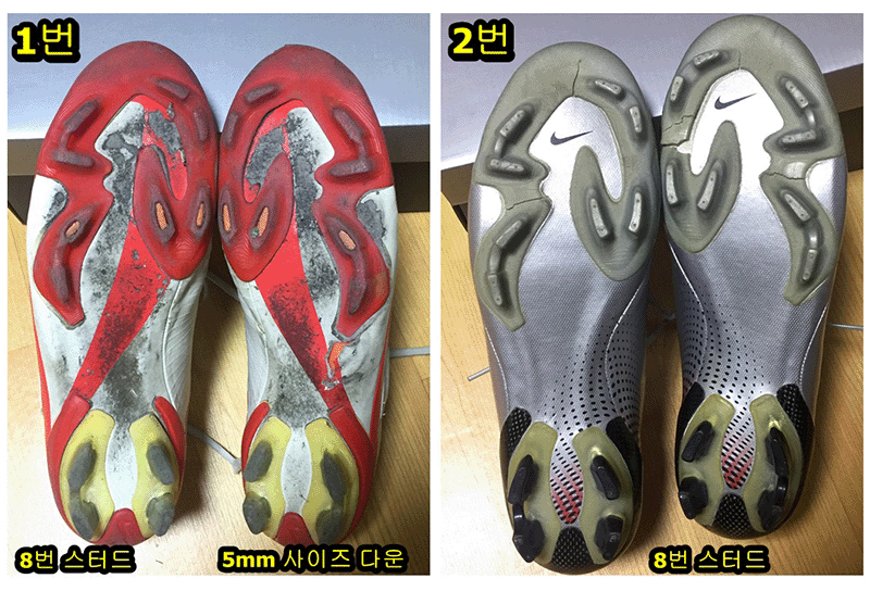 축구화 2개 수선 문의드립니다.