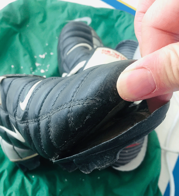 축구화 힐컴안쪽 내피 스웨이드 덧댐과 창벌어짐 수선문의