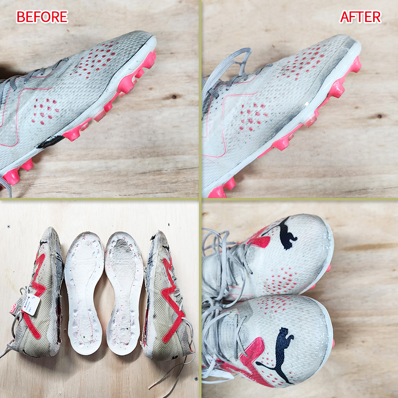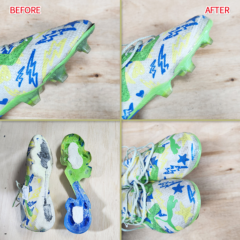 현재 부착되어있는 풋살화 밑창을 완전분해해서 깨끗이 그라인딩한후 새로운 본드로 접착하는 방법으로 가능합니다.