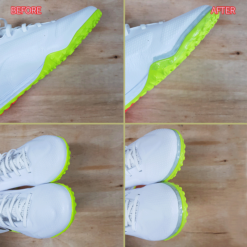 3) 코파처럼 천연가죽에 투명덧댐을 할 경우, 위 사진처럼 덧댐이 닿는 부분의 어퍼 표면 코팅을 벗겨내고 작업해야 덧댐이 떨어지지 않습니다.