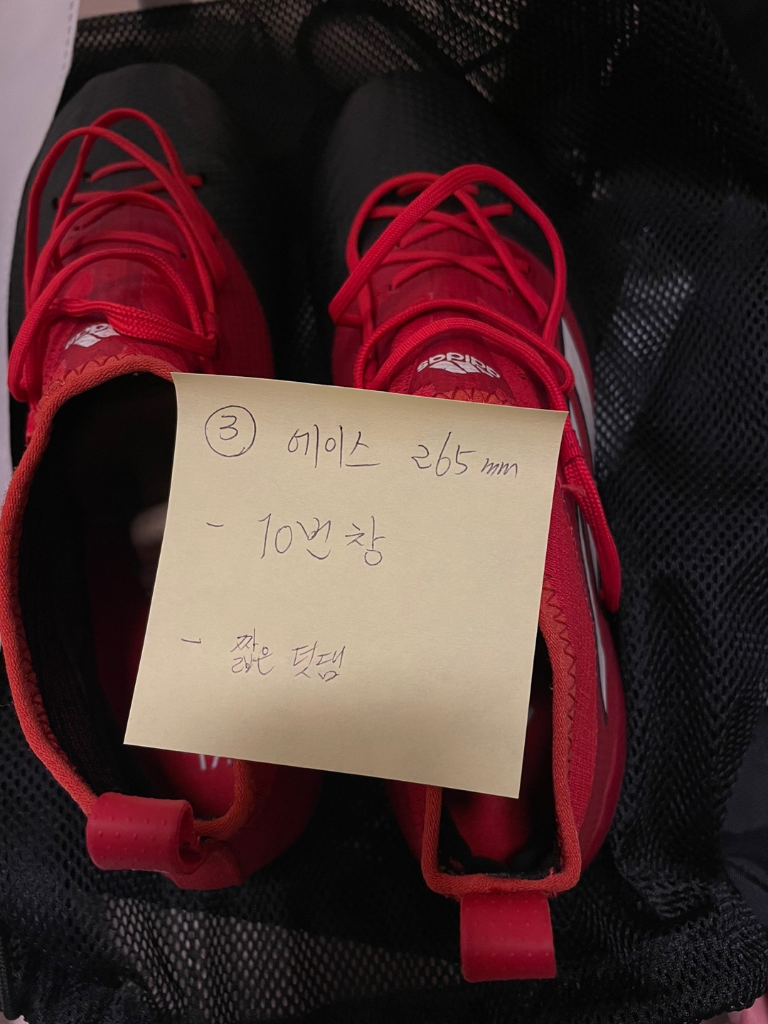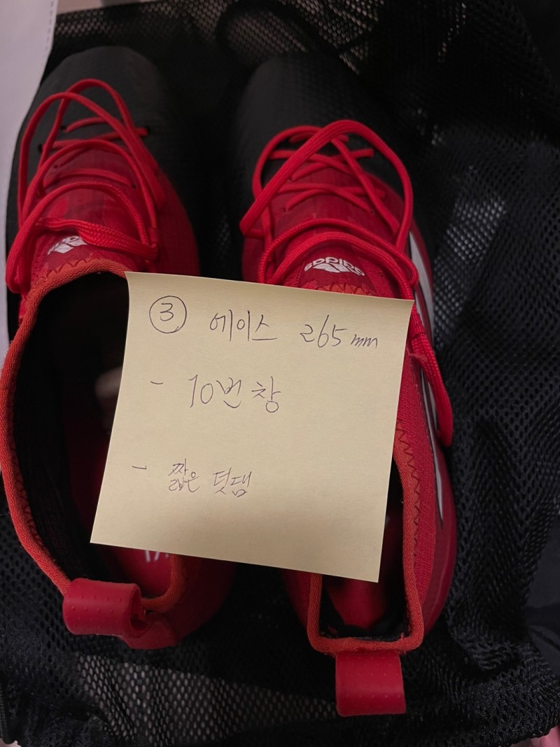 아디다스 에이스 창갈이 신청합니다. (신발 내부에 메모작성하였습니다.)
