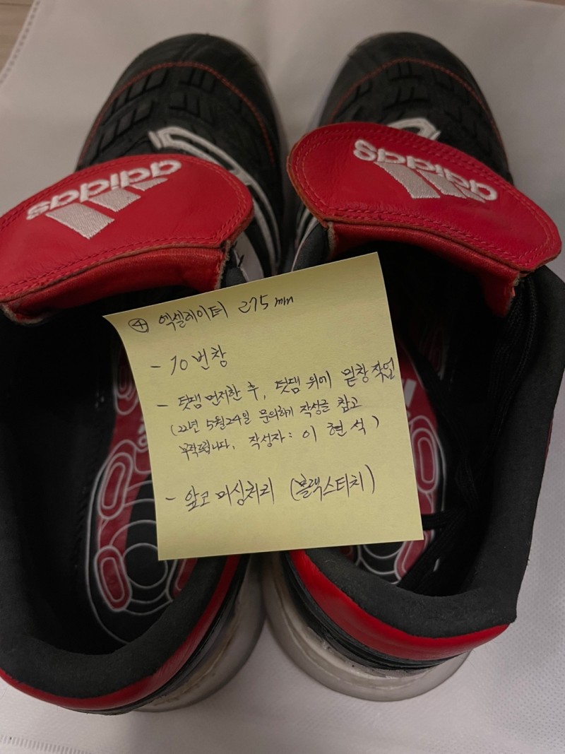 아디다스 엑셀레이터 창갈이 신청합니다. (신발 내부에 메모작성하였습니다.)