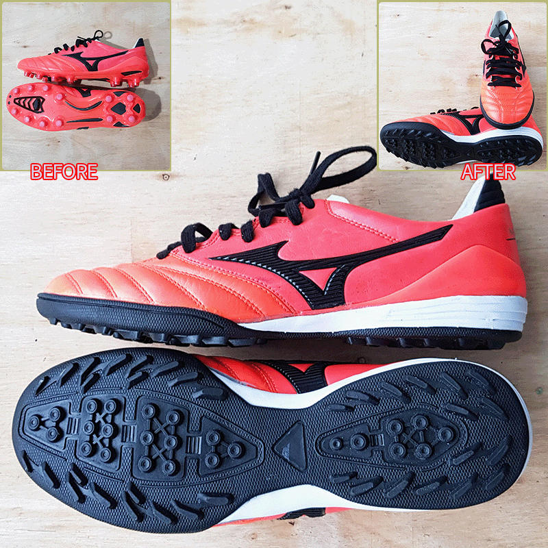 요청하신대로 두켤레 모두 현재사이즈 그대로 창갈이를 해드렸으니 이젠 즐겁게 축구만 하시면 될것 같습니다^^