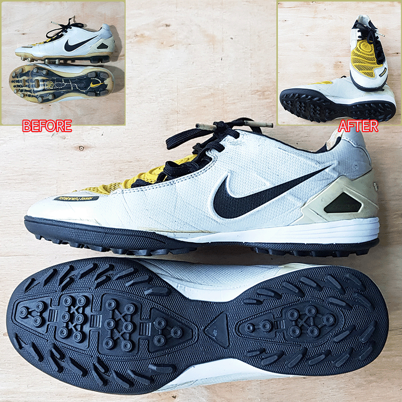 요청하신대로 두 켤레 모두 275mm 사이즈로 맞춰서 창갈이를 해드렸으니 이젠 즐겁게 축구만 하시면 될것 같습니다^^