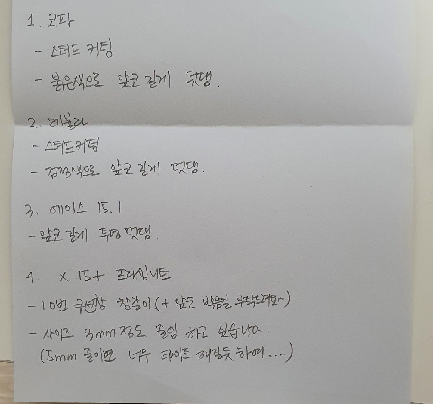 | 요청사항 | 창갈이 |