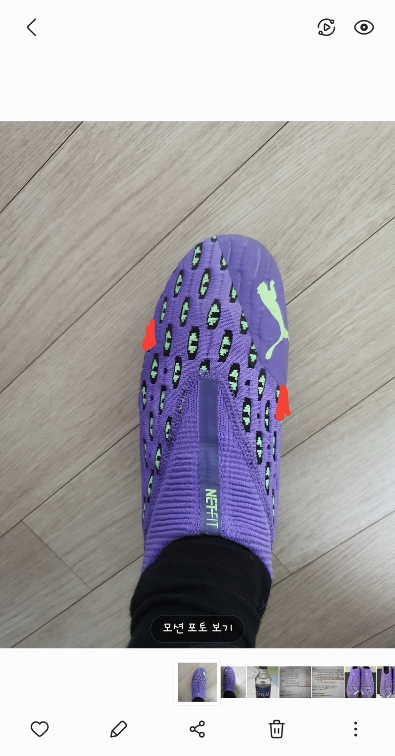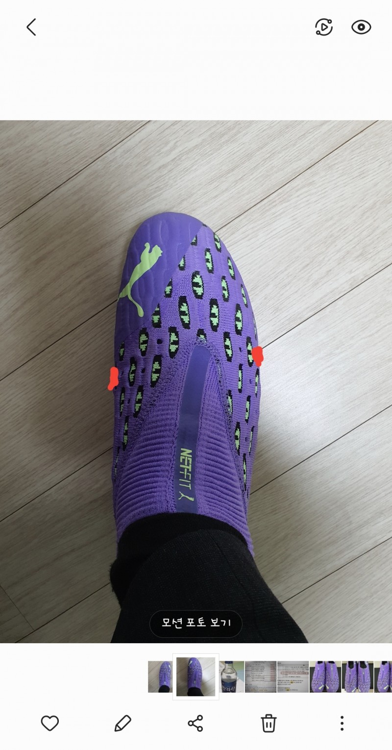 3. 오른발 사진에 표시해두었습니다.( 발바깥쪽과 발안쪽이 꽉 껴서 늘려주셨으면 좋겠습니다. )