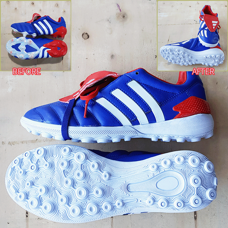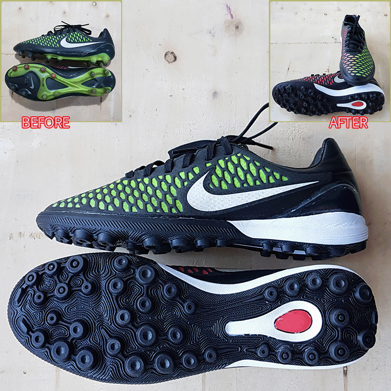 요청하신대로 세 켤레 모두 현재사이즈 그대로, 매니아는 13번, 마지스타는 13-1번, 인스팅트는 13-1번으로 창갈이를 해드렸으니 이젠 즐겁게 축구만 하시면 될것 같습니다^^