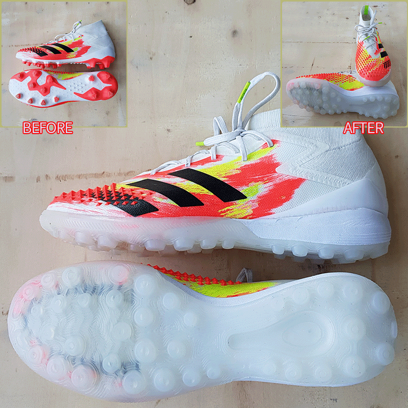 요청하신대로 기장 2~3mm, 볼 2~3mm, 발등 5mm 늘려서 창갈이를 해드렸으니 이젠 즐겁게 축구만 하시면 될것 같습니다^^