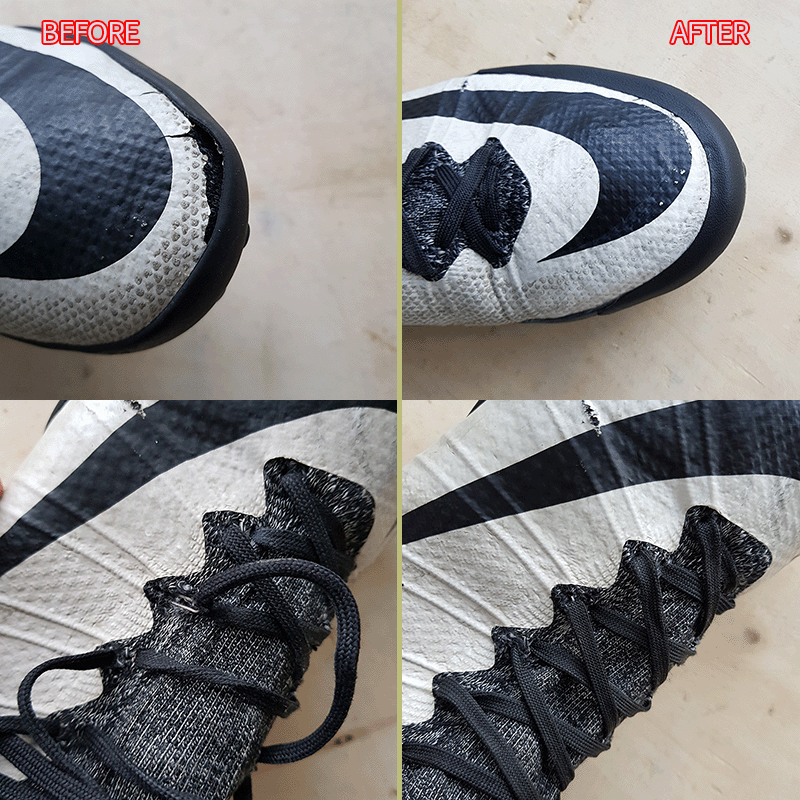 요청하신대로 왼발 앞코 벌어짐과 끈구멍 수선 해드렸으니 이젠 즐겁게 축구만 하시면 될것 같습니다^^