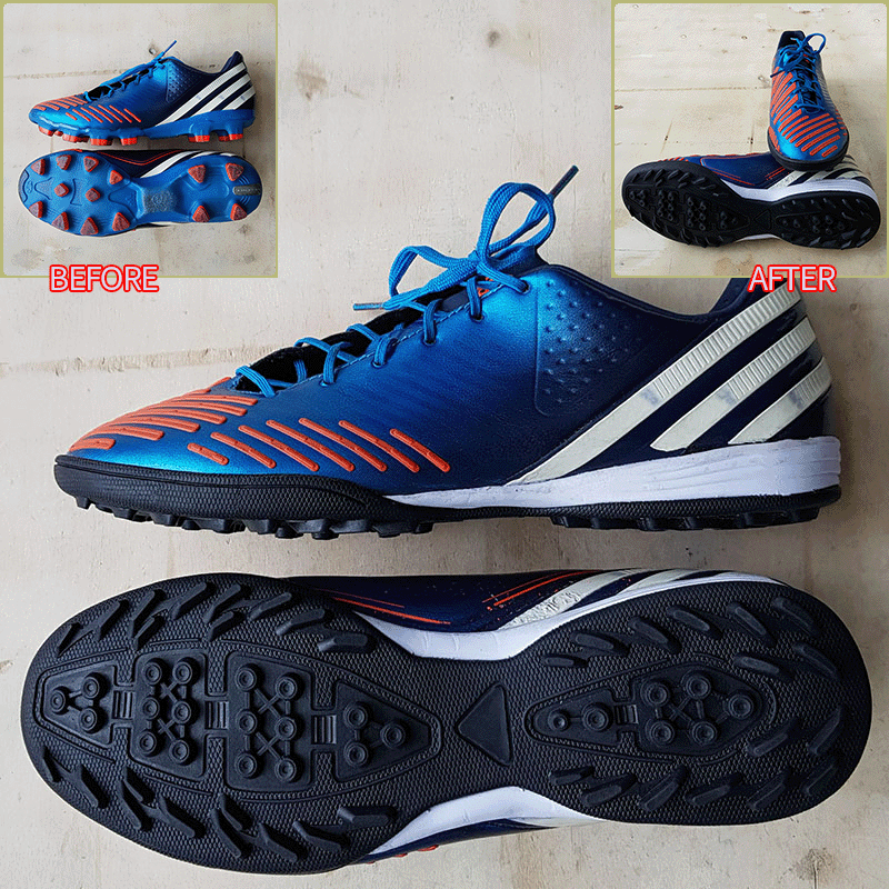 요청하신대로 왼발 기장만 2mm 늘려서 창갈이를 해드렸으니 이젠 즐겁게 축구만 하시면 될것 같습니다^^
