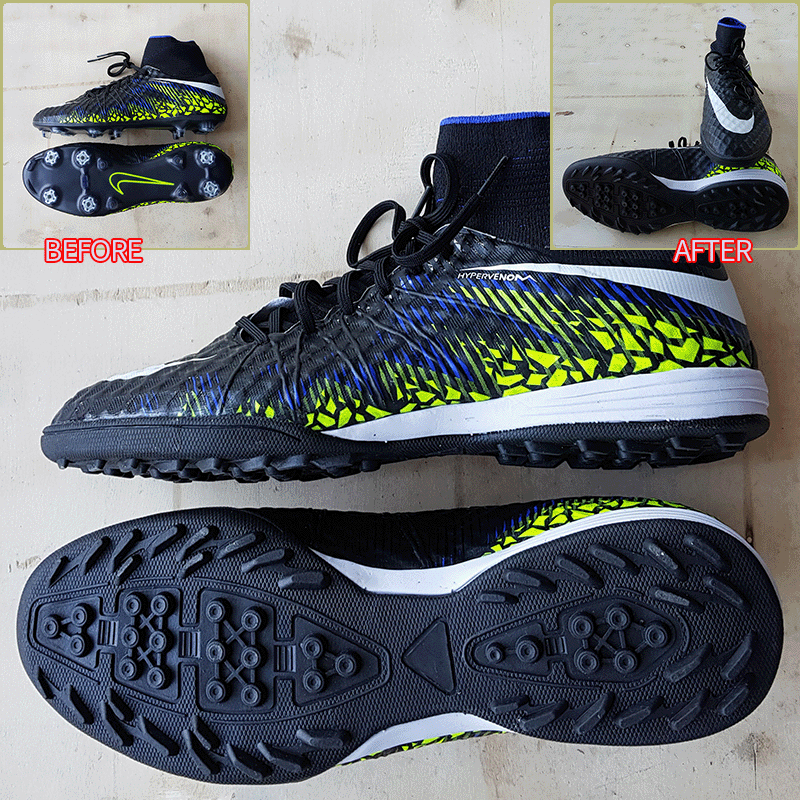 요청하신대로 왼발만 기장 5mm 늘려서 창갈이를 해드렸으니 이젠 즐겁게 축구만 하시면 될것 같습니다^^