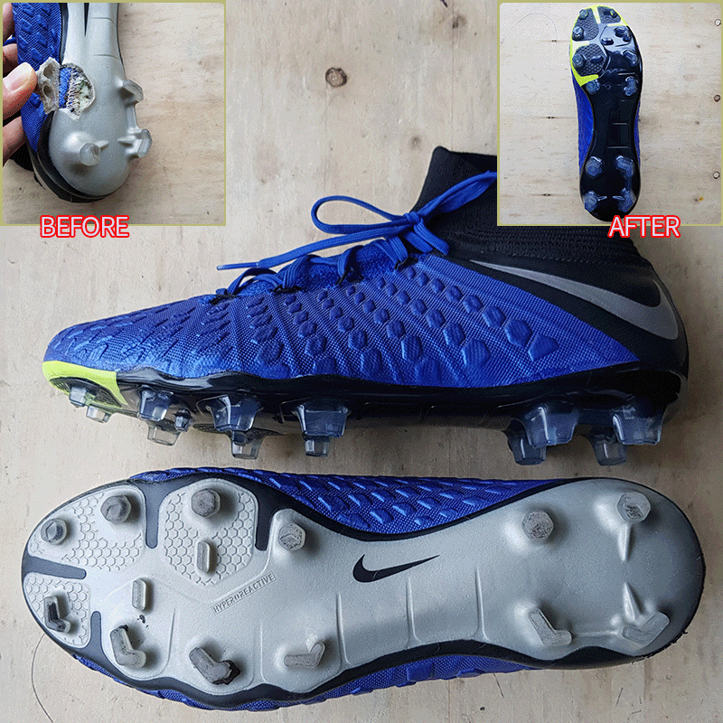 요청하신대로 왼발만 현재사이즈 그대로 창갈이를 해드렸으니 이젠 즐겁게 축구만 하시면 될것 같습니다^^