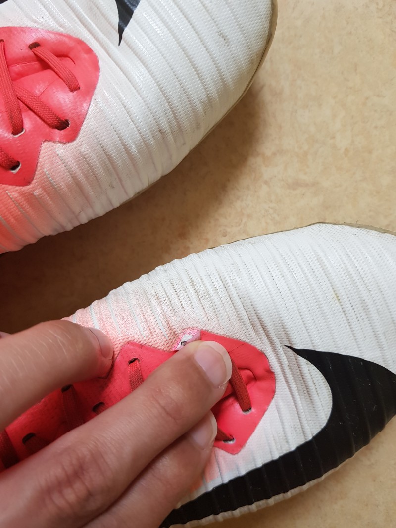 발등에 끈 부분쪽 접착