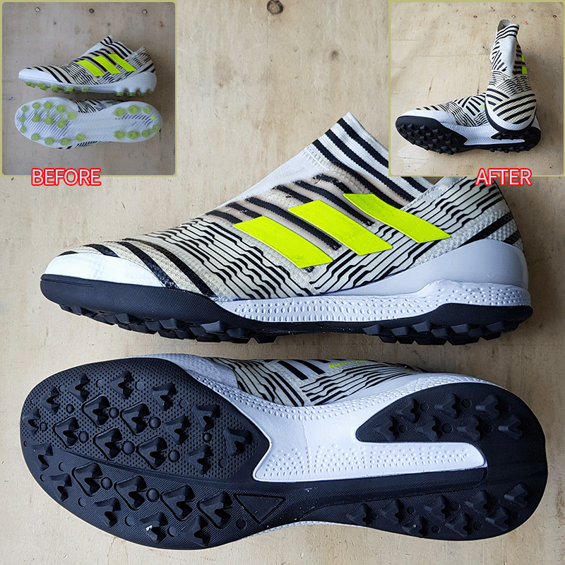 요청하신대로 기장5mm 줄이고 왼쪽 발볼 2mm 오른쪽 발볼 1mm 양쪽 발등 2mm 늘려서 창갈이를 해드렸으니 이젠 즐겁게 축구만 하시면 될것 같습니다^^
