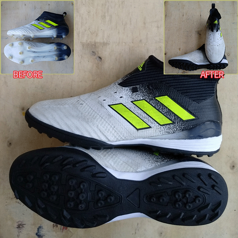 요청하신대로 기장5mm 볼10mm 중족부10mm 늘려서 창갈이를 해드렸으니 이젠 즐겁게 축구만 하시면 될것 같습니다^^