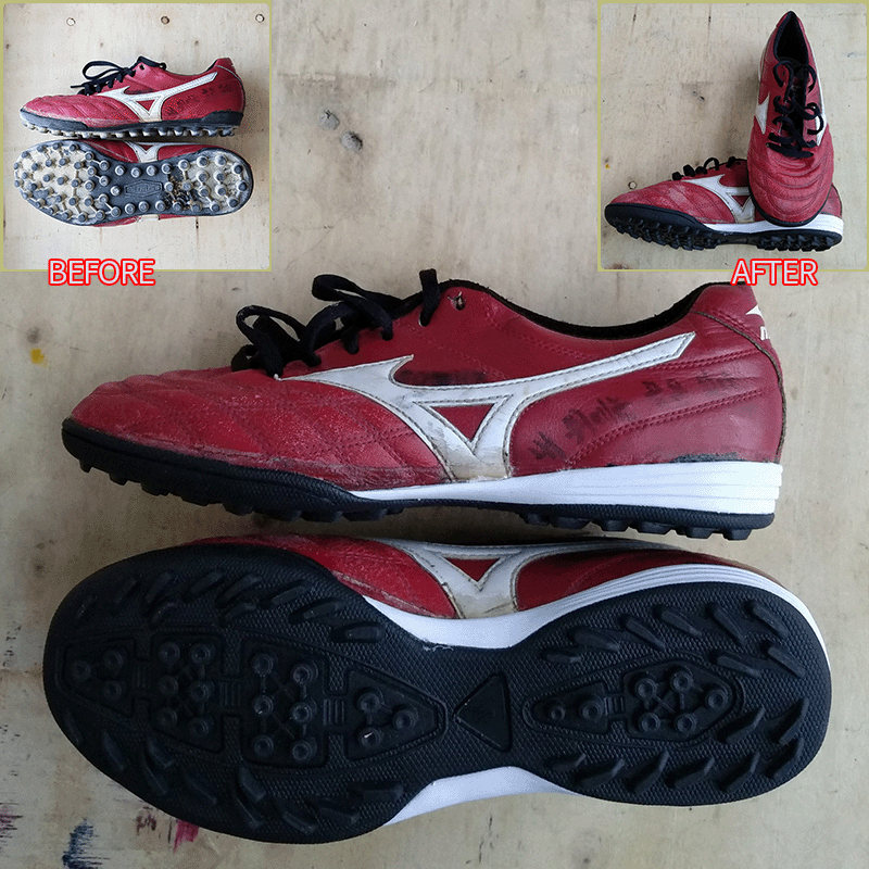 요청하신대로 기장 왼쪽 3mm 오른쪽 5mm 줄이고 볼은 3mm 늘리고 발등보강하여 창갈이를 해드렸으니 이젠 즐겁게 축구만 하시면 될것 같습니다^^
