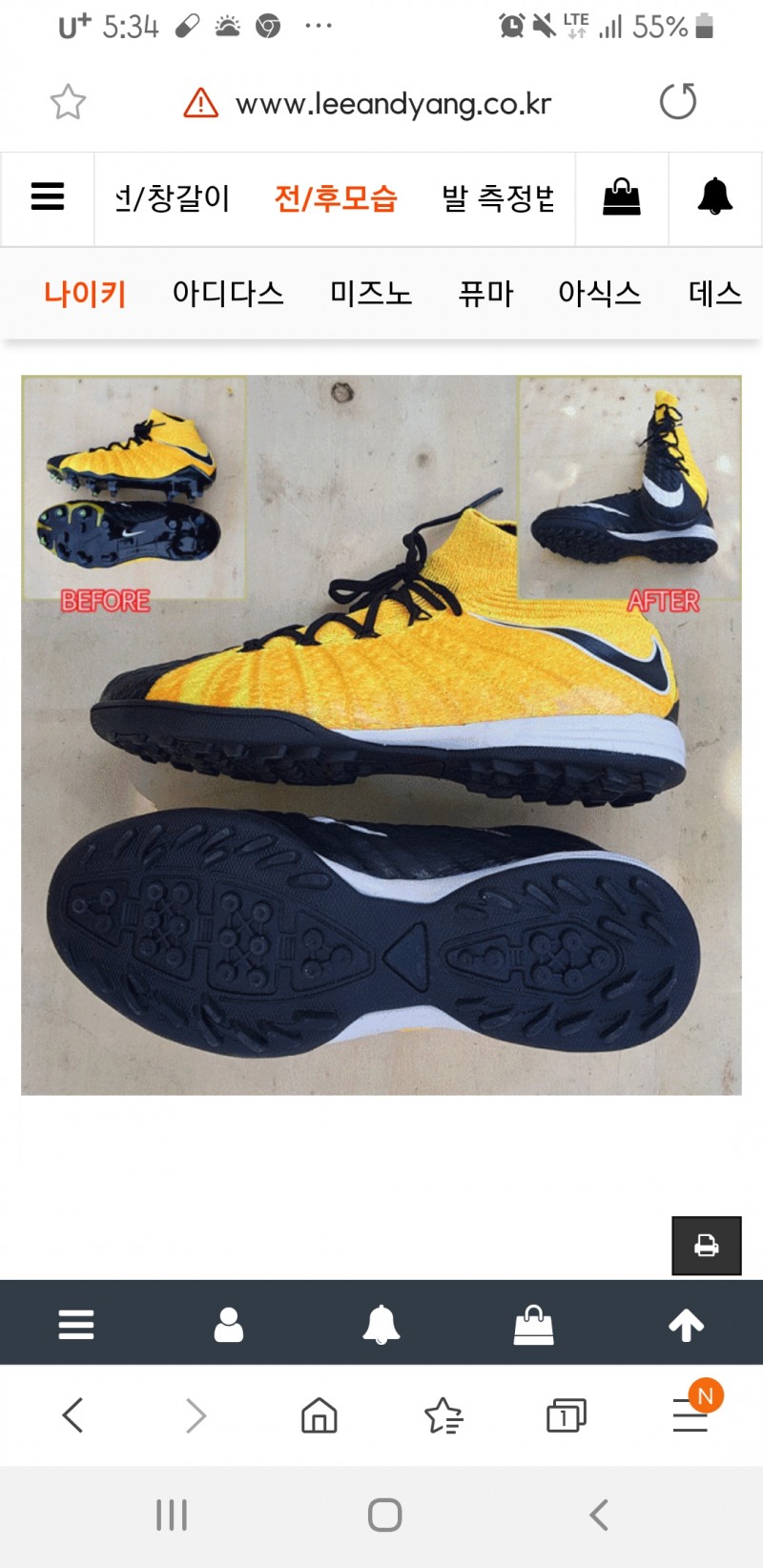 창갈이한 축구화 AS신청합니다