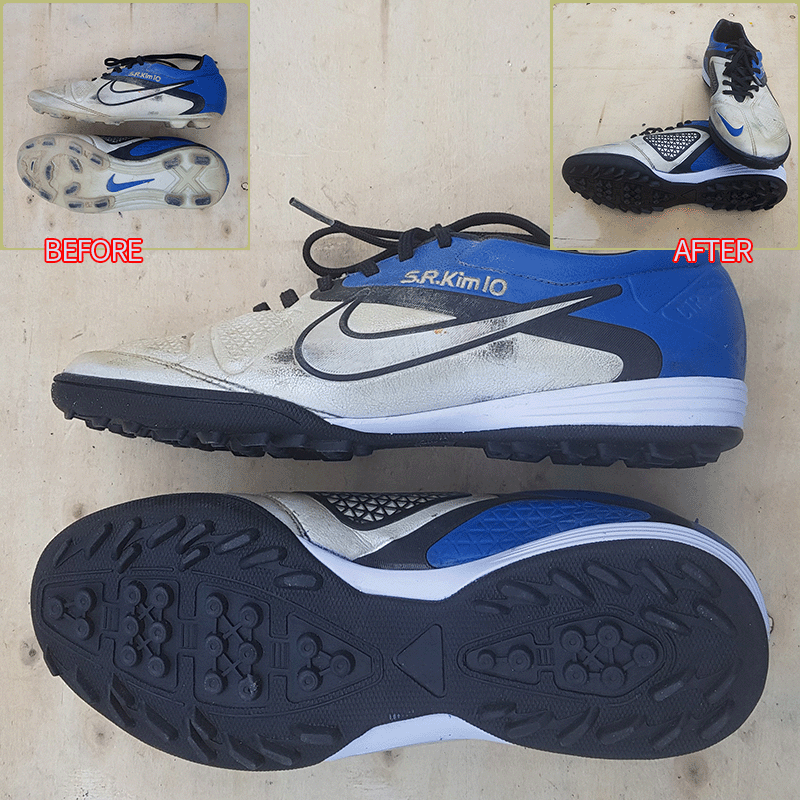 요청하신대로 오른발 볼만 2mm 늘려서 창갈이를 해드렸으니 이젠 즐겁게 축구만 하시면 될것 같습니다.