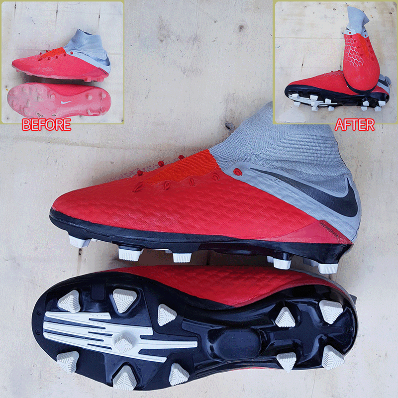 요청하신대로 발볼을 2~3mm 늘려서 창갈이를 해드렸으니 이젠 즐겁게 축구만 하시면 될것 같습니다.
