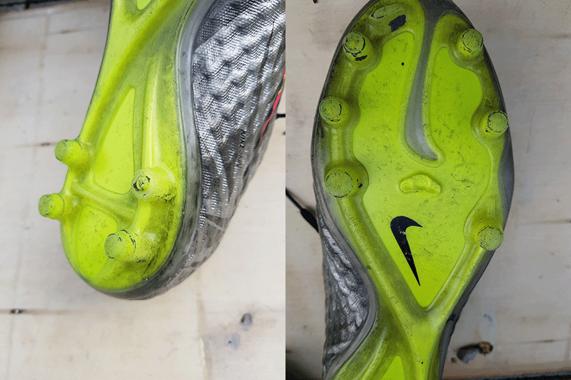 오른쪽은 뒤꿈치부분에 왼쪽은 앞중간부분에 뽕이 떨어져 나갔어요 쇠뽕으로 수리부탁드립니다^^