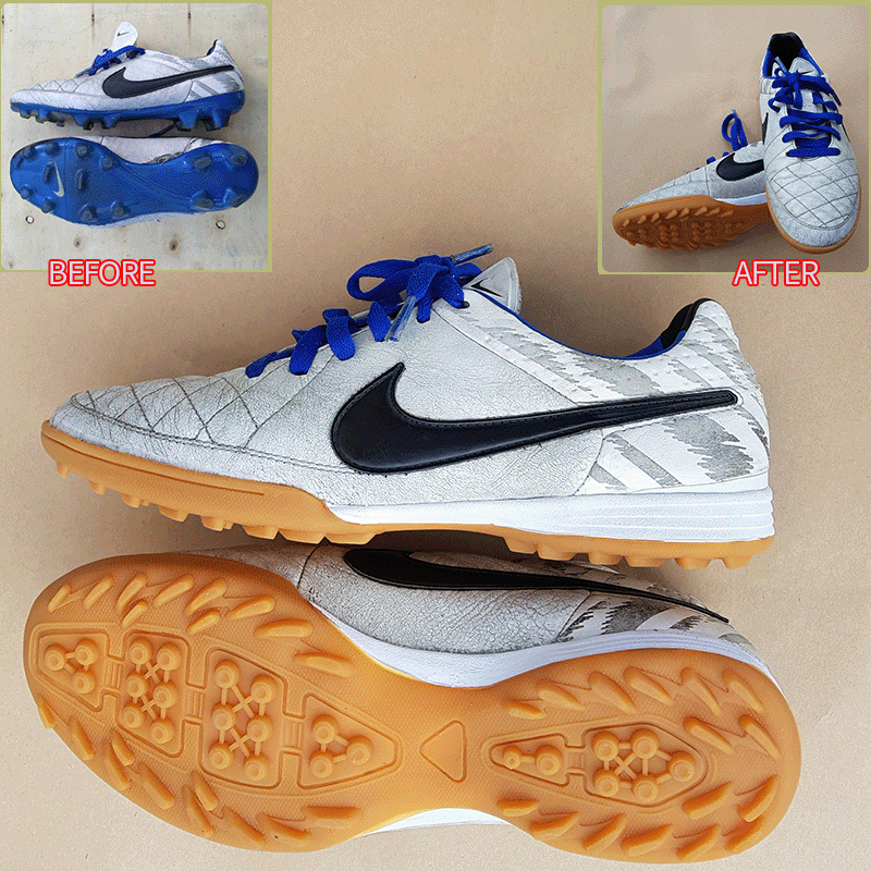 요청하신대로 보내주신 축구화 기장과 볼을 5mm늘려서 창갈이를 해드렸으니 이젠 즐겁게 축구만 하시면 될것 같습니다.