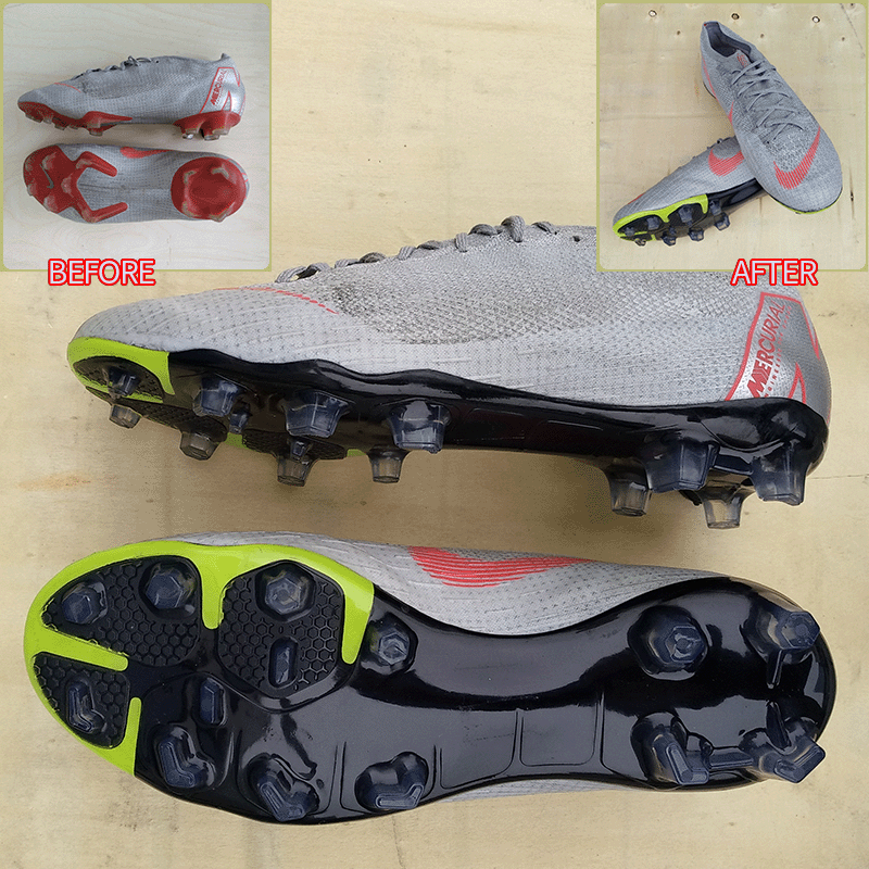 요청하신대로 길이나 발볼등은 손보지 않고 있는 원래그대로 정사이즈로 창만 교체하였으니 즐겁게 축구만 하시면 될것 같습니다.