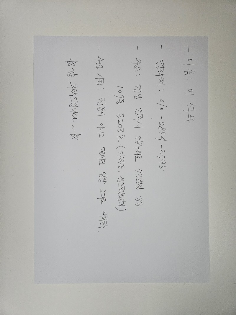 보내실 곳: 경기도 고양시 덕양구 서오릉로 433 한우만 3층 리앤양
