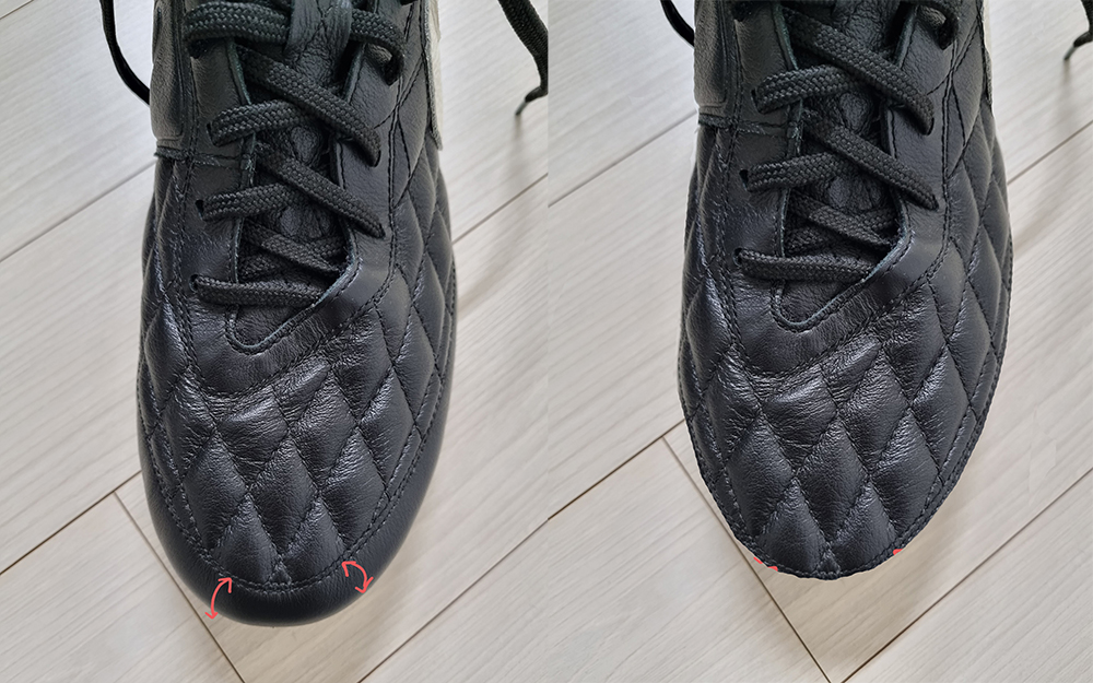 첨부된 사진을 보시면 발등부터 앞코까지 스티치 처리가 되어 있는데요.