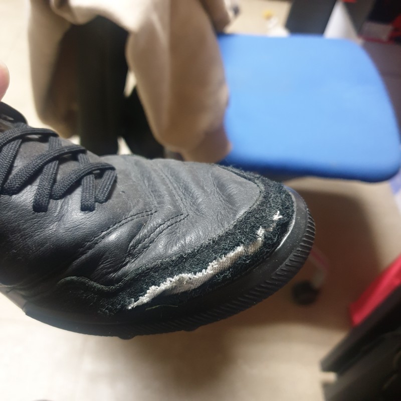 이 글 전 글에 말씀드렸던 티엠포인데요, 왼쪽 앞부분이 이렇게 찢어졌거든요. 그래서 밑창만이라도 마지스타에 붙이려 했던건데