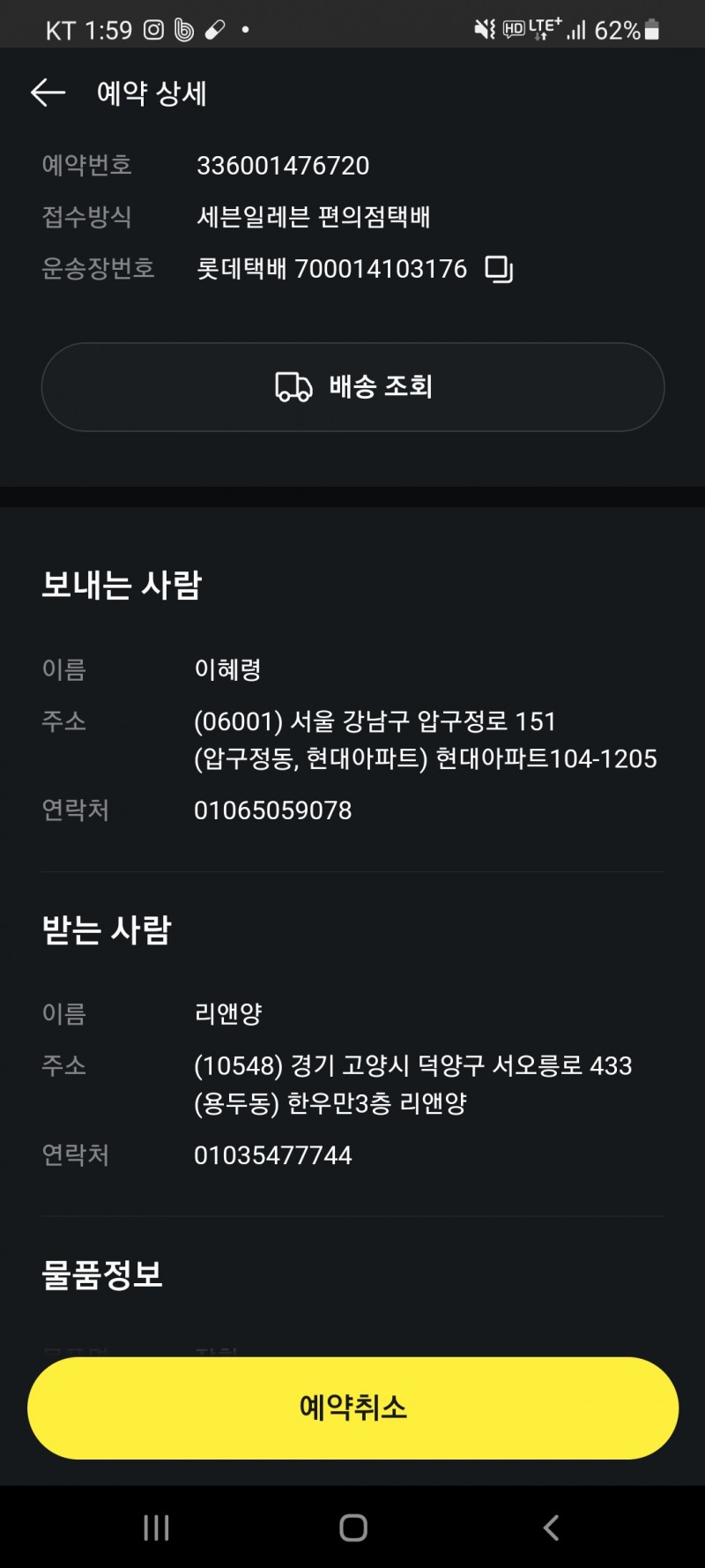 제 와이프가 본인 이름과 전화번호로 택배를 보냈습니다