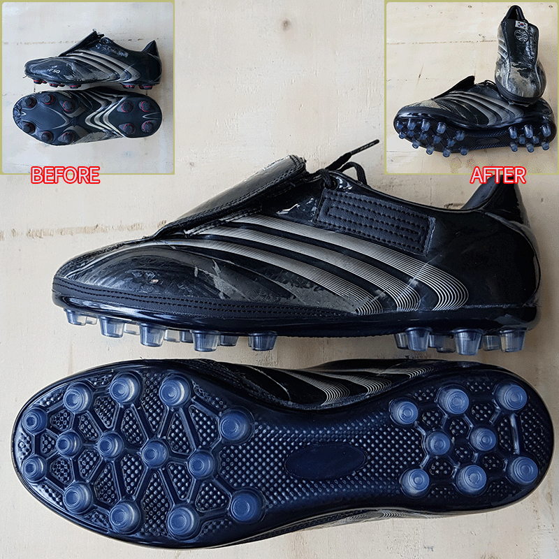 요청하신대로 기장 258mm 맞추고, 볼은 현재에서 2~3mm 줄여서 창갈이 하고, 이니셜이 있던 자리 미싱처리 해드렸으니 이젠 즐겁게 축구만 하시면 될것 같습니다^^