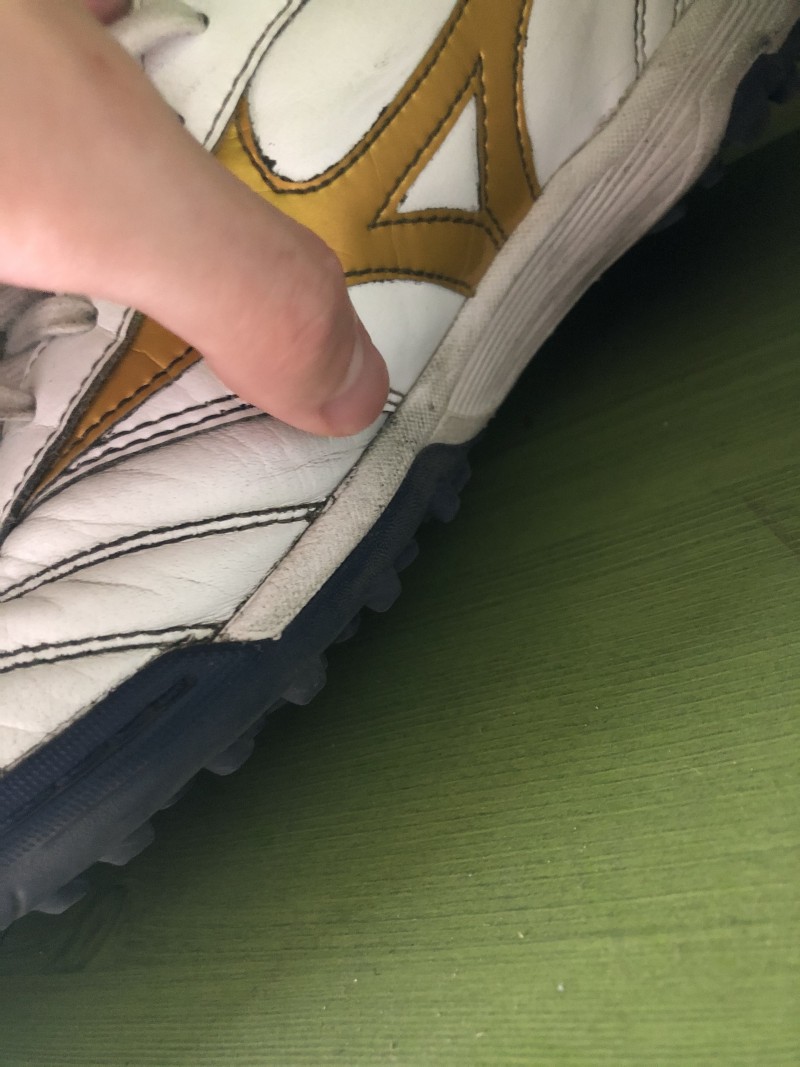 풋살화 캥거루가죽부분과 인조가죽이 이어지는 부분에