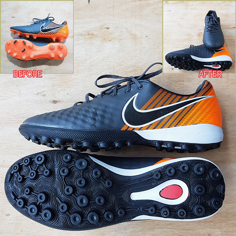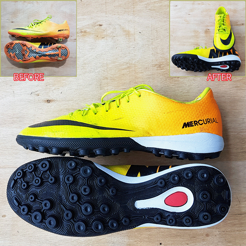 요청하신대로 두 켤레 모두 현재사이즈 그대로 창갈이를 해드렸으니 이젠 즐겁게 축구만 하시면 될것 같습니다^^