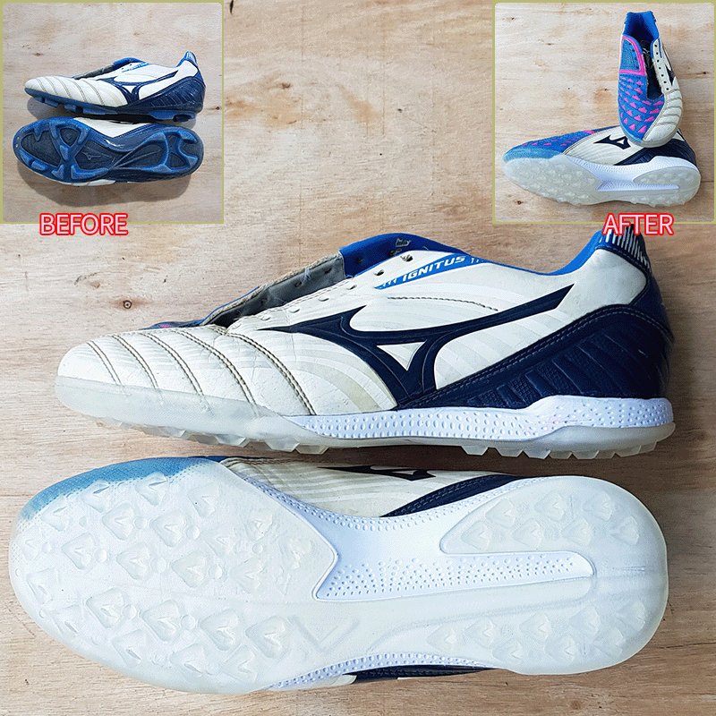 요청하신대로 두켤레 모두 현재사이즈 그대로, 나이키는 10번창, 미즈노는 10-1번창으로 창갈이를 해드렸으니 이젠 즐겁게 축구만 하시면 될것 같습니다^^