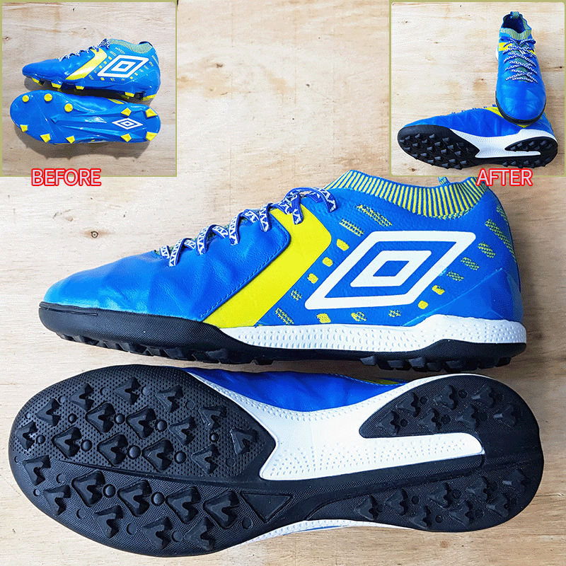 요청하신대로 엄브로는 10번창, 퓨마는 9번창으로 두 켤레 모두 현재사이즈 그대로 창갈이를 해드렸으니 이젠 즐겁게 축구만 하시면 될것 같습니다^^