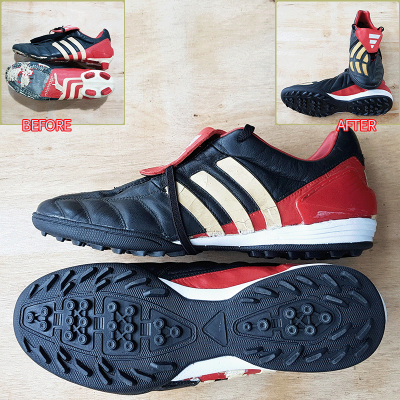 요청하신대로 두켤레 모두 9번창, 현재사이즈 그대로 창갈이와 아디다스 프레데터 텅 고무줄 교체, 텅 찍찍이 수선 해드렸으니 이젠 즐겁게 축구만 하시면 될것 같습니다^^