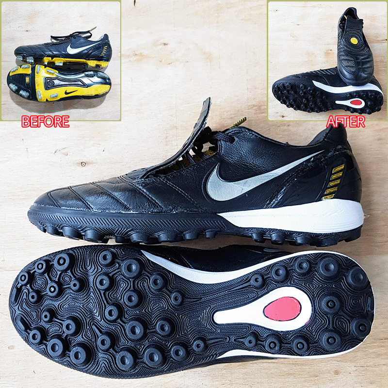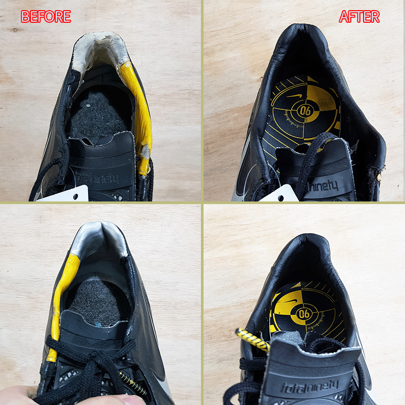 요청하신대로 왼발은 265mm 맞추고, 오른발은 기장 3mm 늘려서 창갈이 하고, 안감 수선 해드렸으니 이젠 즐겁게 축구만 하시면 될것 같습니다^^