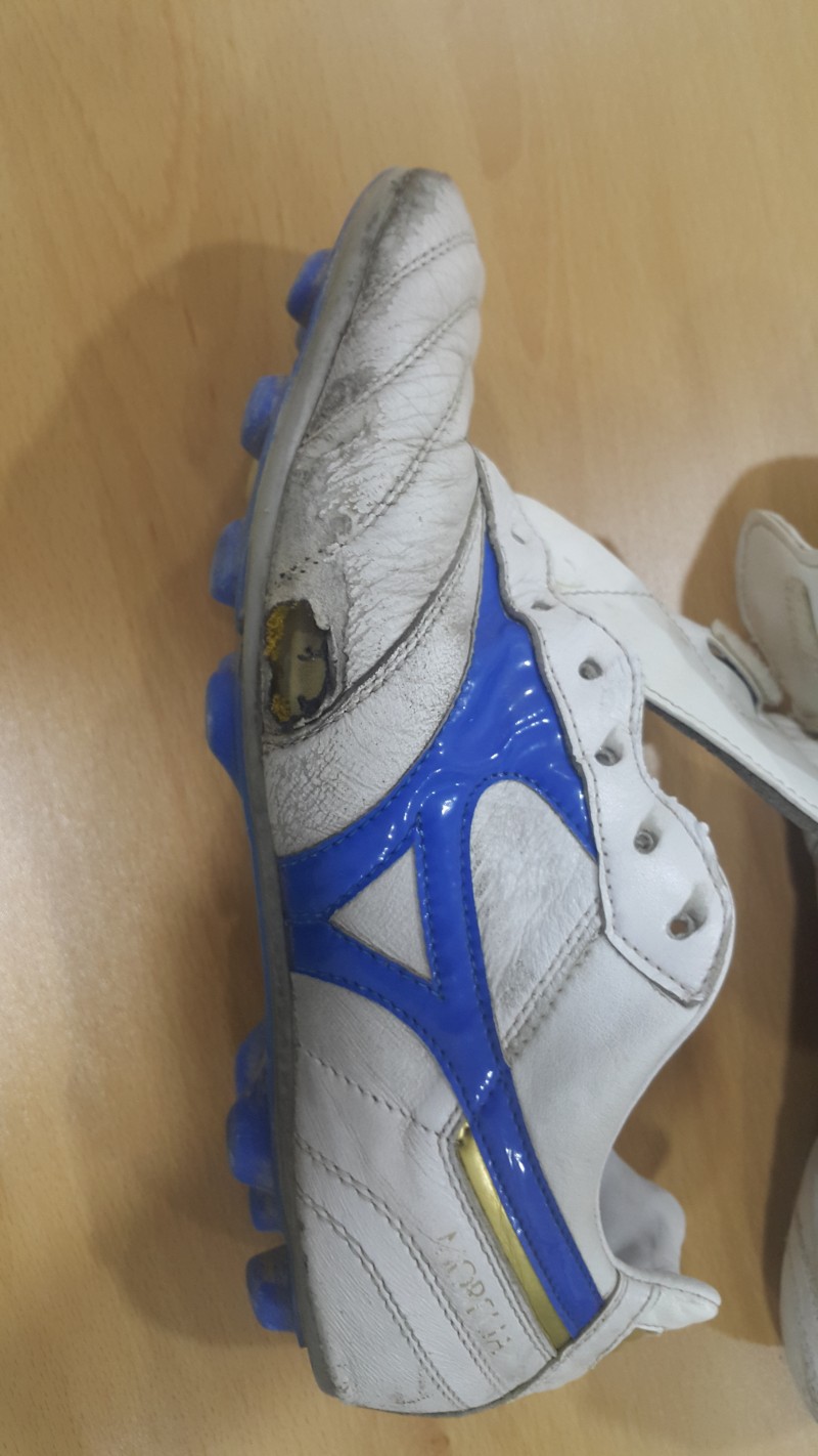세월의 흐름을 꽤나 탄 축구화라 손댈 부분이 많이 있어보입니다. 또한 전체적으로 수선해야 할 부분을 보시고 해주시면 감사하겠습니다.