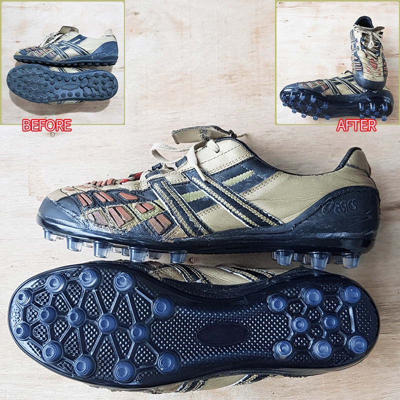> 세월의 흐름을 꽤나 탄 축구화라 손댈 부분이 많이 있어보입니다. 또한 전체적으로 수선해야 할 부분을 보시고 해주시면 감사하겠습니다.