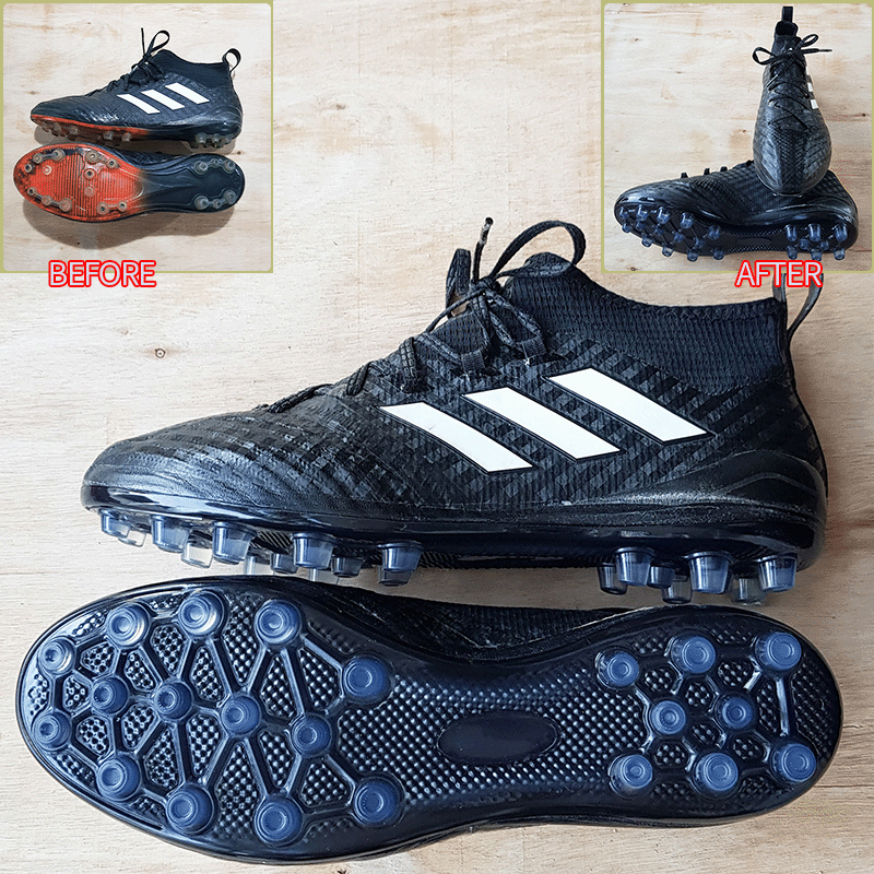 요청하신대로 에이스17은 12번창으로 X18.1은 14-1번창으로 두 켤레 모두 현재사이즈 그대로 창갈이를 해드렸으니 이젠 즐겁게 축구만 하시면 될것 같습니다^^
