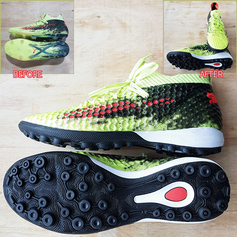 요청하신대로 270mm에 볼 7mm 늘려서 창갈이를 해드렸으니 이젠 즐겁게 축구만 하시면 될것 같습니다^^