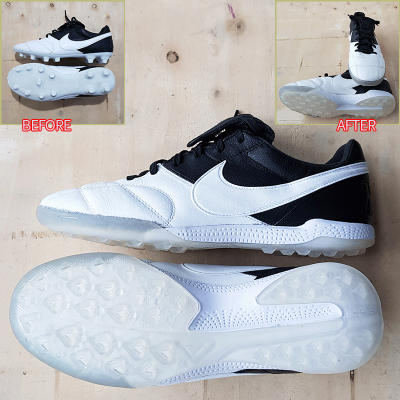 요청하신대로 세 켤레 모두 현재사이즈 그대로 창갈이를 해드렸으니 이젠 즐겁게 축구만 하시면 될것 같습니다^^