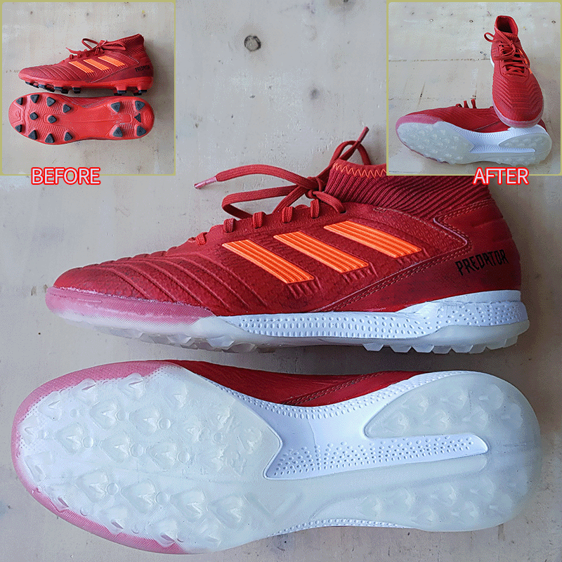 요청하신대로 두 켤레 모두 현재사이즈 그대로 창갈이를 해드렸으니 이젠 즐겁게 축구만 하시면 될것 같습니다^^