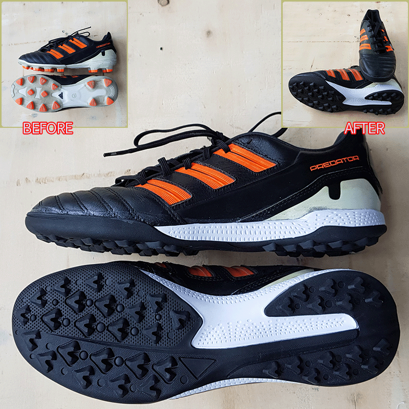 요청하신대로 기장 2~3mm, 볼 2~3mm 늘려서 창갈이를 해드렸으니 이젠 즐겁게 축구만 하시면 될것 같습니다^^