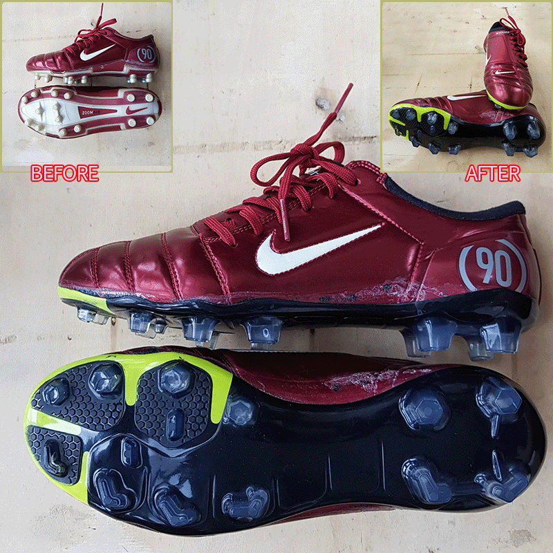 > 수선내용 : 8번 스터드 창갈이 / 축구화 내부 뒷꿈치부분 수선(양쪽 모두)