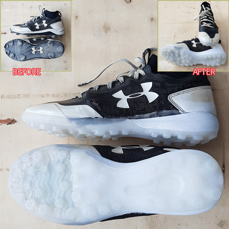 요청하신대로 조던은 270mm 사이즈에 맞추고, 언더아머는 현재사이즈 그대로 창갈이를 해드렸으니 이젠 즐겁게 축구만 하시면 될것 같습니다^^