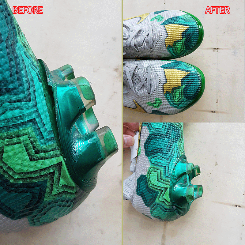 요청하신대로 뒷꿈치 떨어진 부분과, 앞코 덧댐 해드렸으니 이젠 즐겁게 축구만 하시면 될것 같습니다^^