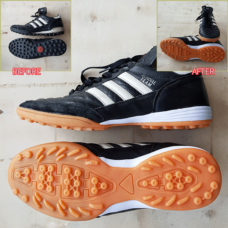 요청하신대로 기장 2~3mm, 볼 5mm 줄여서 창갈이를 해드렸으니 이젠 즐겁게 축구만 하시면 될것 같습니다^^